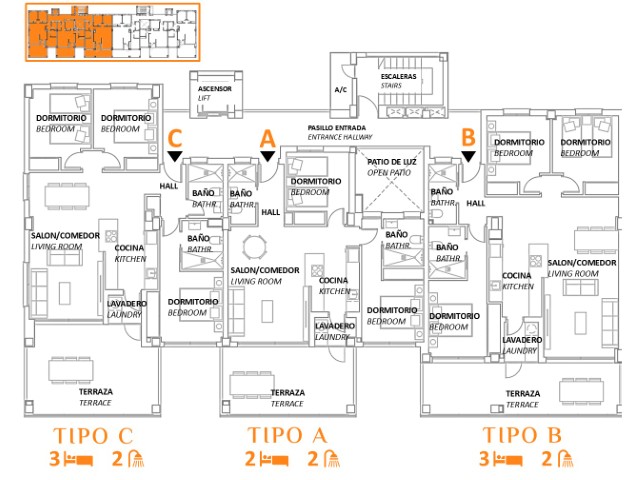 Tipo B: 3 dormitorios / 2 baños central a partir de 276.000 € + IVA.